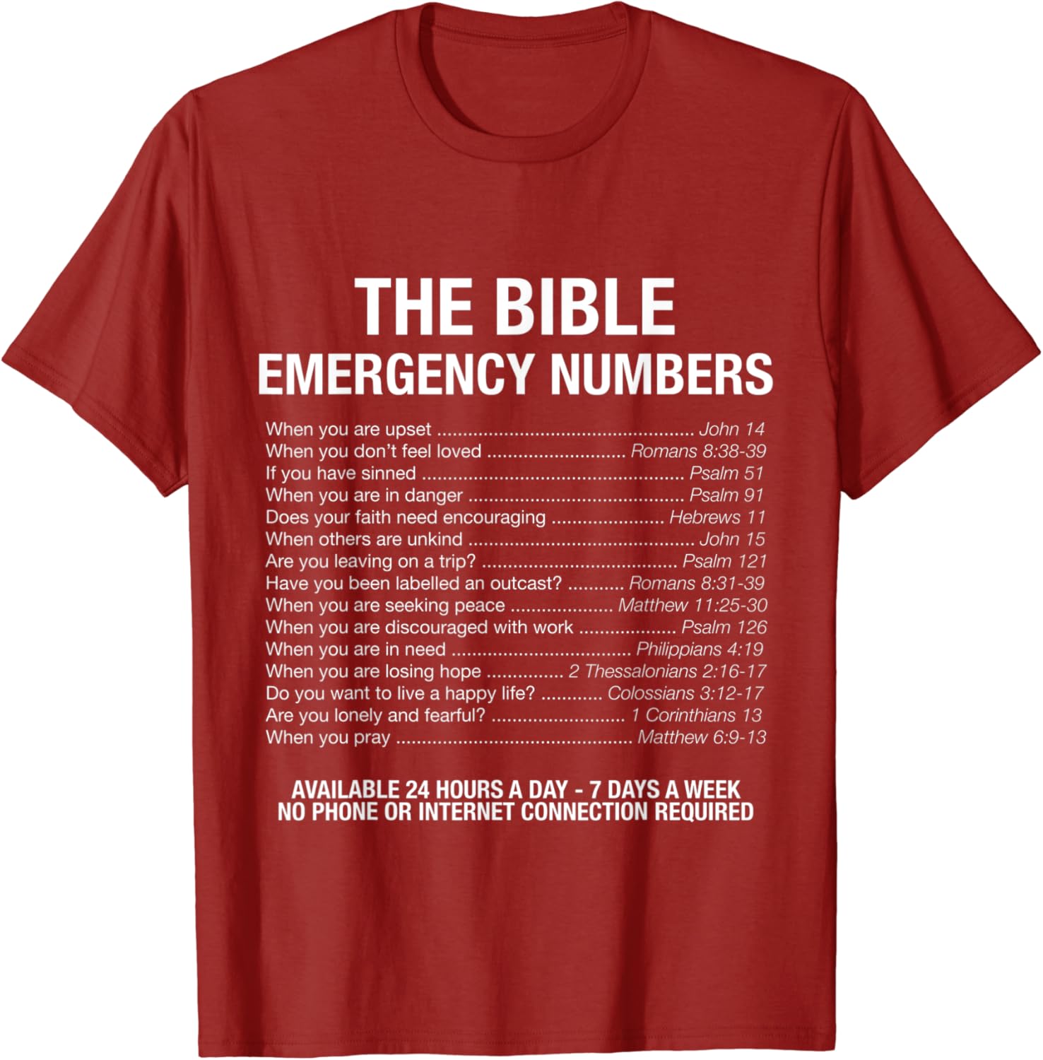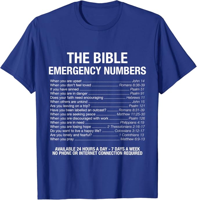 Amazon Com The Bible Emergency Numbers T Shirt Clothing Shoes Jewelry