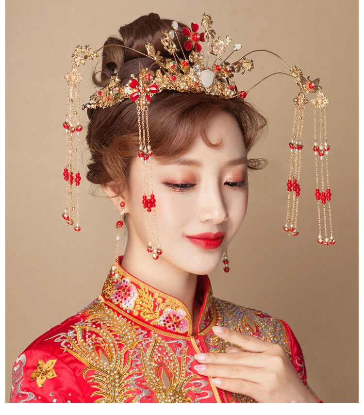 Vintage Traditional Chinese Wedding Bridal Tassels Headwear Earrings Jewelry Set Ebay